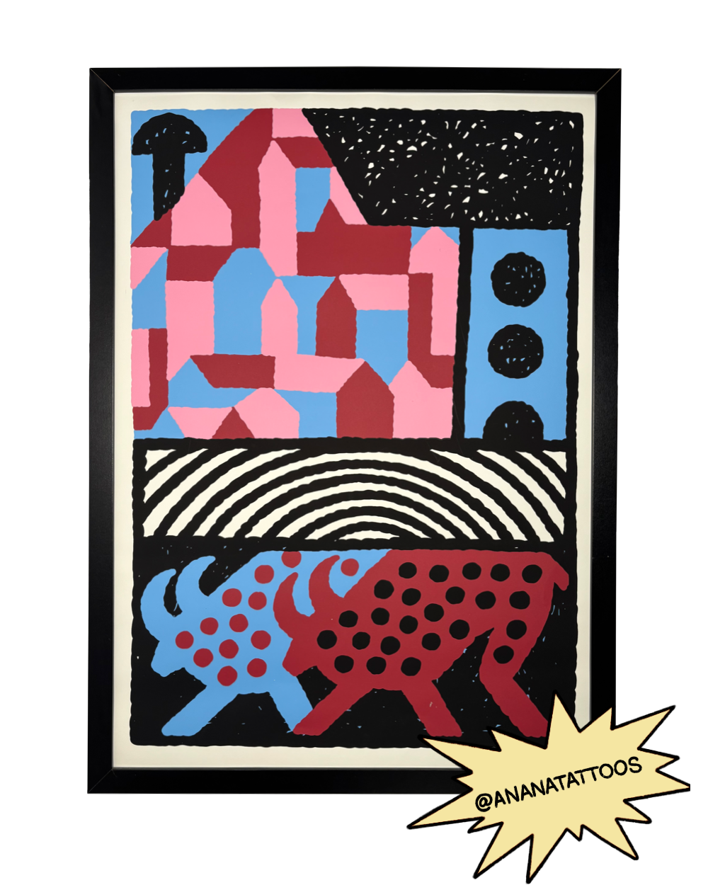 Anna nos envía una serigrafía a cuatro tintas, edición de 50 copias, firmada y numerada, de título “Cases i Bous”, 50x70. Tiene un precio de 65€.