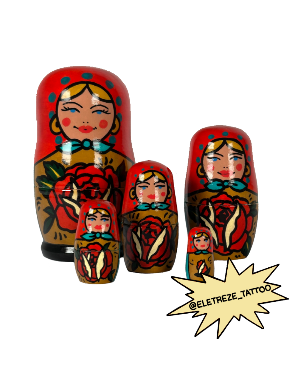 Elena nos envía dos obras: esta matrioska pintada a acrílico y una lámina a acuarela. Está obra tiene un precio de 250€.