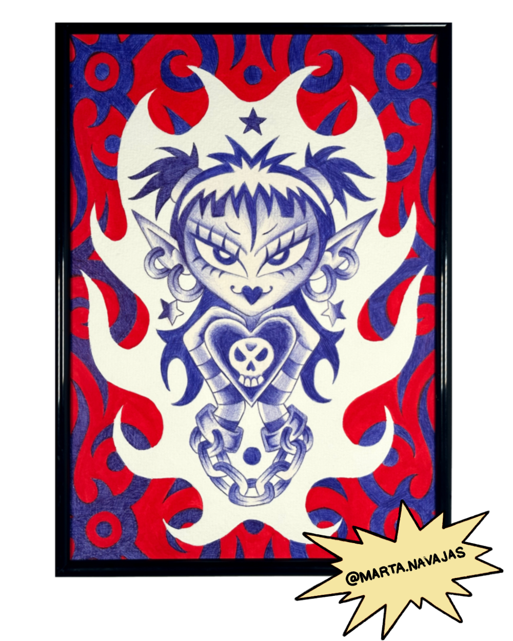 Marta nos envía esta lámina a acuarela acrílica y boli bic, papel de acuarela. Esta obra mide 29,7x21cm. Tiene un precio de 150€.