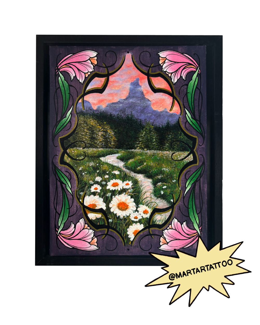 Marta nos envía dos cuadros sobre lienzo, 18x24, acrílico y rotulador. Este es uno de ellos, y tiene un precio de 150€.