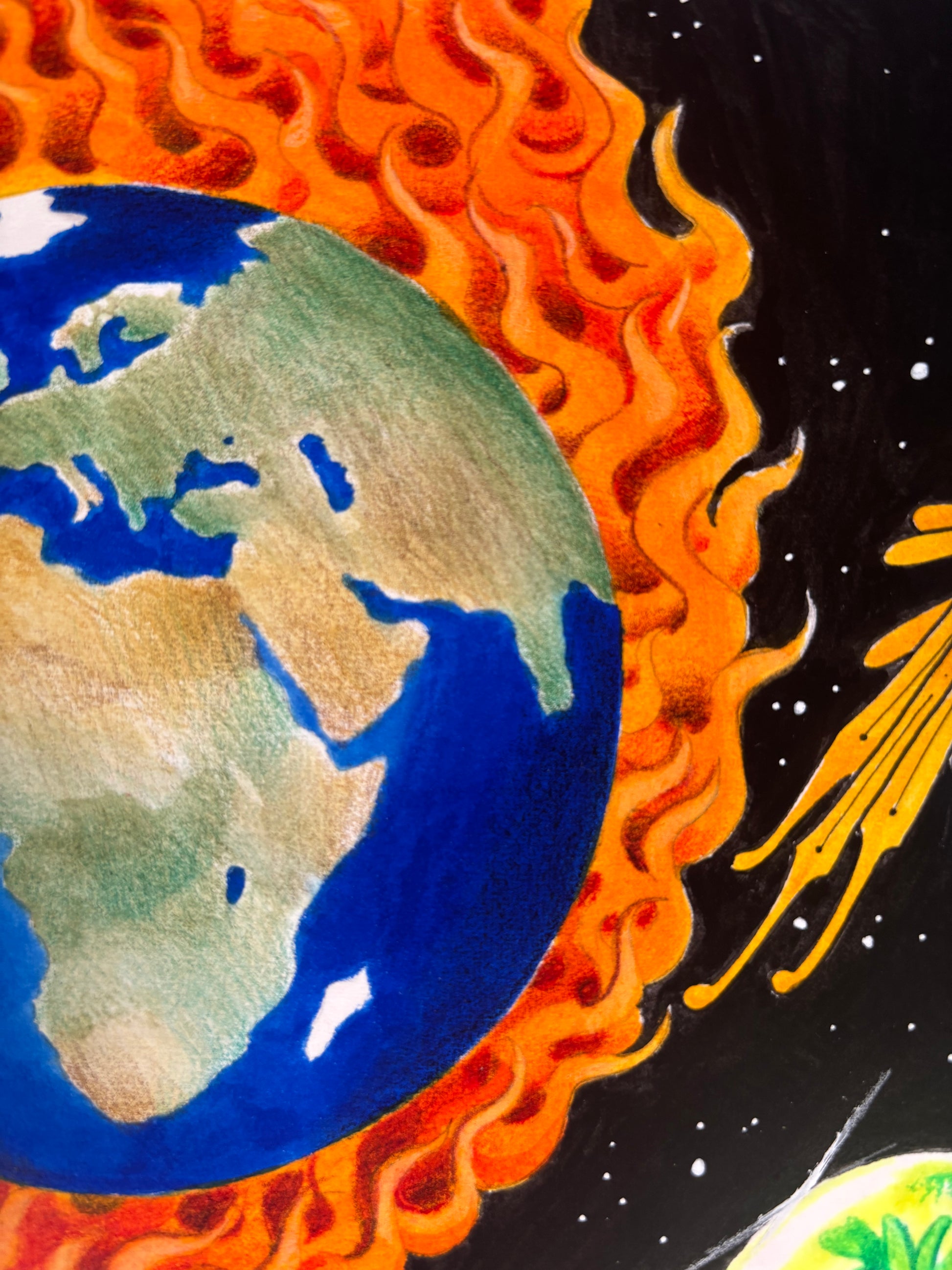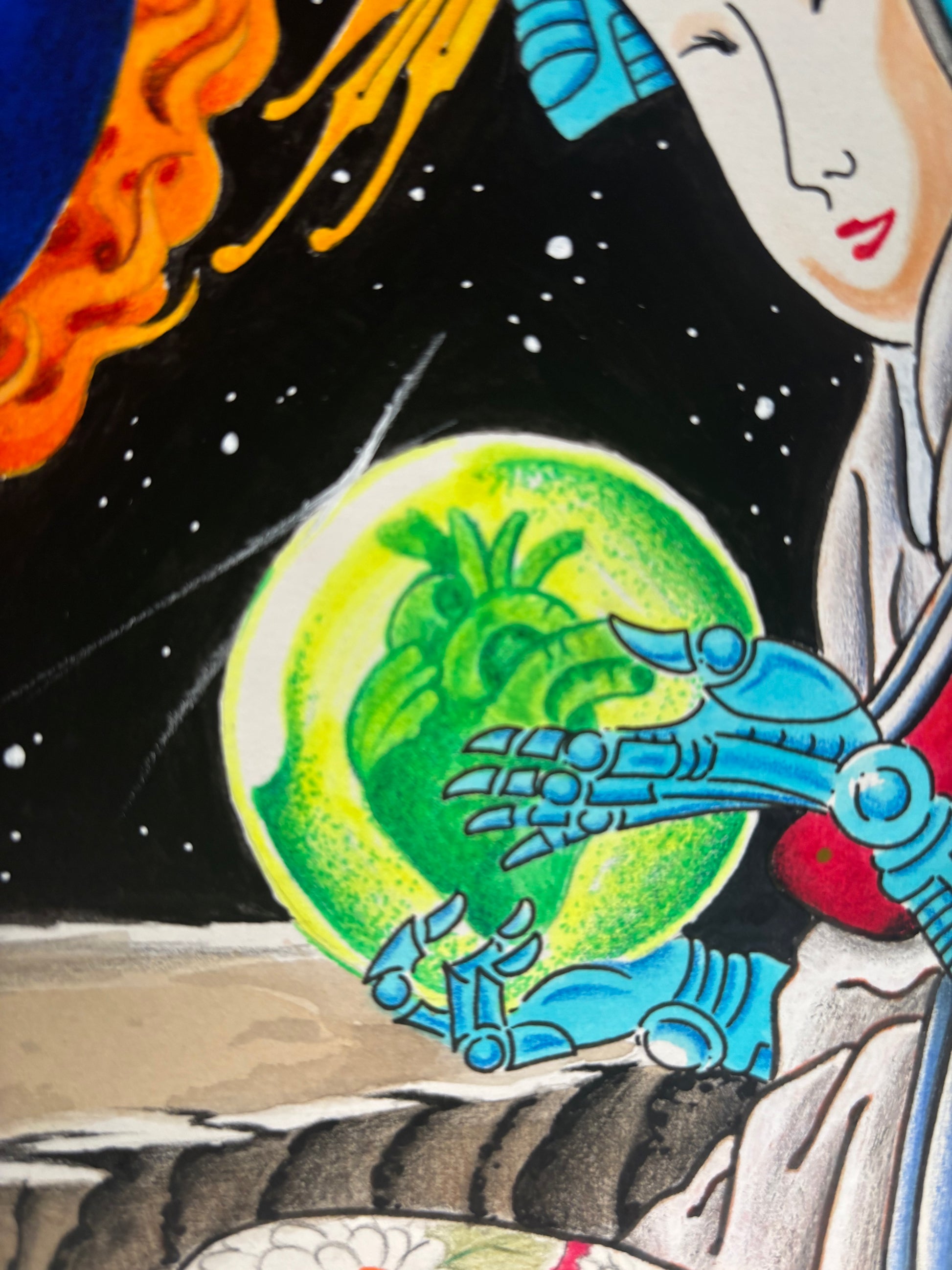 Melani nos envía esta lámina a acrítico, acuarela y lápiz, sobre papel de acuarela. Esta obra mide 30x42cm. Tiene un precio de 80€.