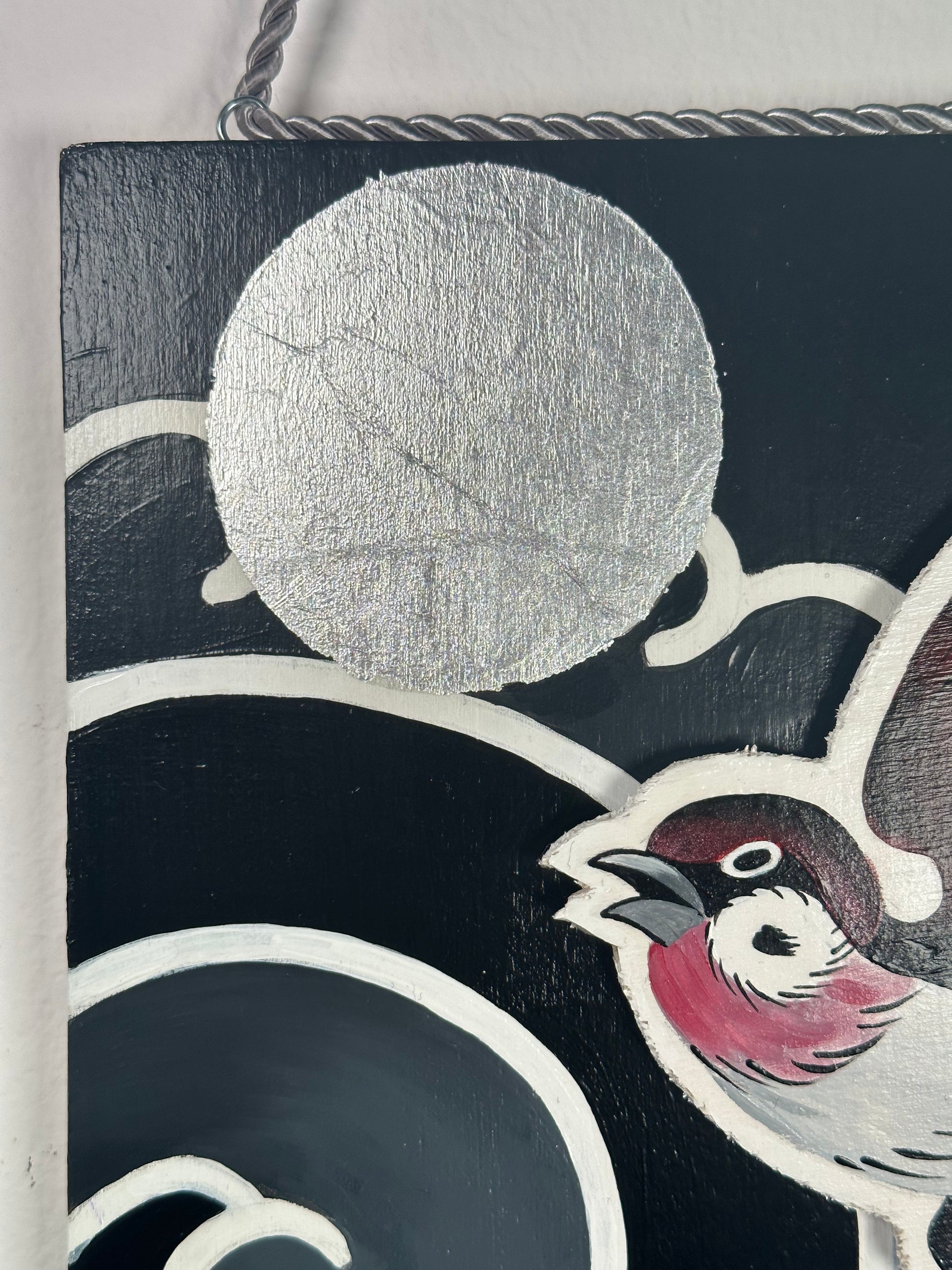 Andrea nos envía esta tablilla de madera, pintura acrílica y pan de plata. Esta obra mide 31x39cm. Tiene un precio de 150€.
